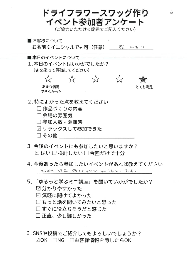ドライフラワースワッグ作りワークショップ