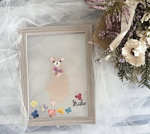 くまさんデザインの“足形アート”を可愛いフレームにアレンジ!